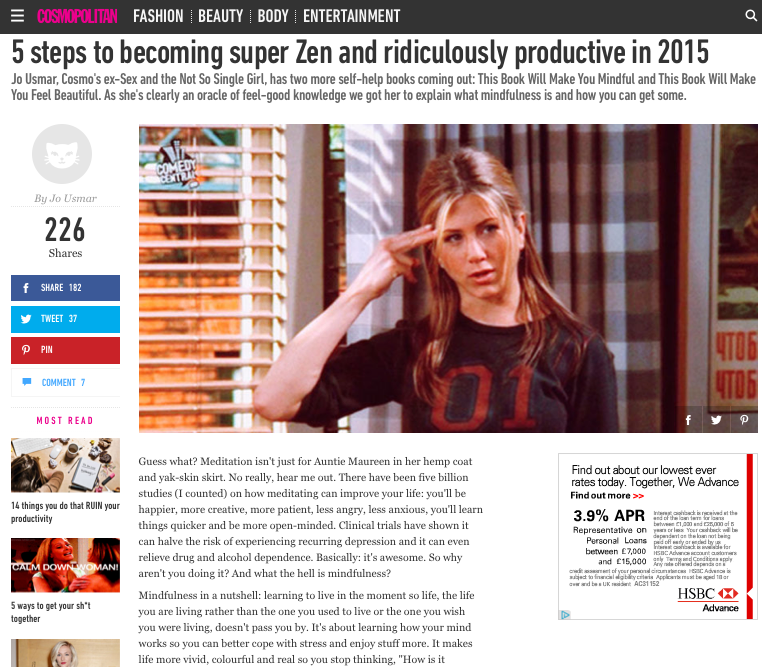 The press campaign is well and truly underway for our two new titles: This Book Will Make You Mindful and This Book Will Make You Feel Beautiful. Jessamy and I have two features in Cosmopolitan, a glowing review in Look and an interview on Radio 4’s Woman’s Hour. And there’s lots more to come overContinue reading “Book press: features, reviews and interviews in Cosmopolitan, Look and on R4’s Woman’s Hour”